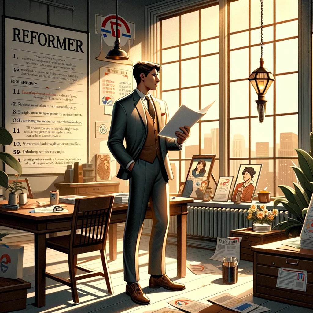 에니어그램의 1번 유형, '개혁가'는 높은 이상과 원칙을 가지고 있으며, 정직, 책임감, 그리고 헌신을 중요시합니다. 이 유형의 리더는 정의와 올바름을 추구하며, 높은 기준과 가치를 바탕으로 조직이나 팀을 이끕니다. 개혁가 유형의 리더는 팀을 개선하고, 더 높은 표준을 설정하기 위해 노력합니다.